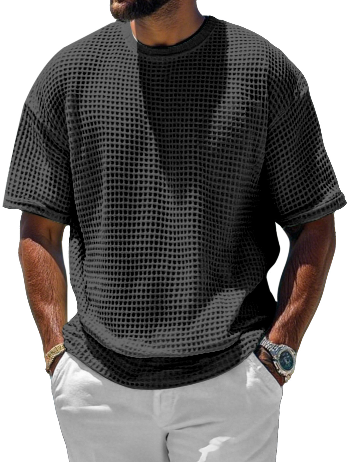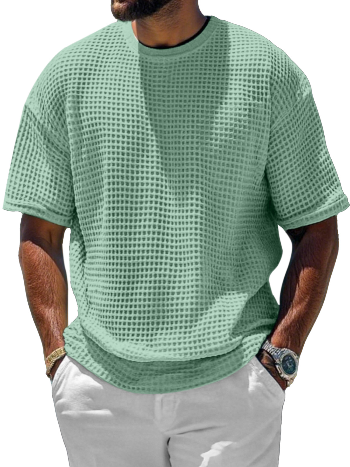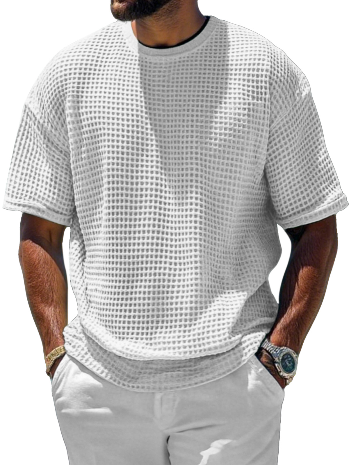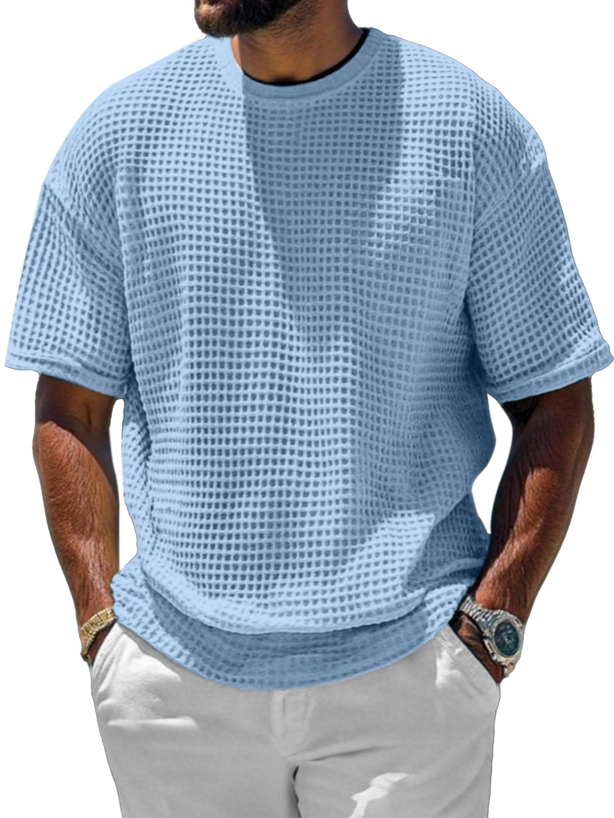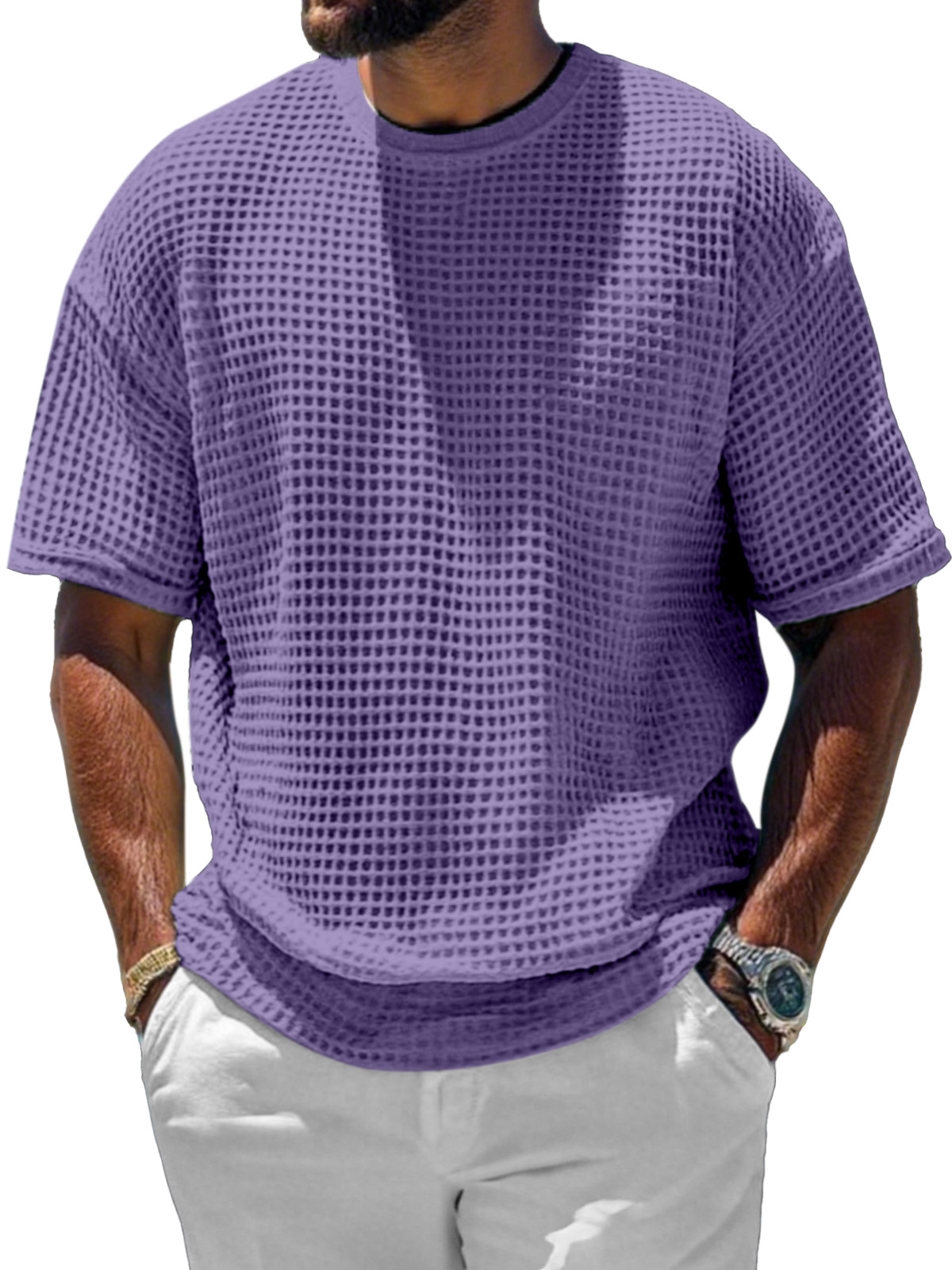 Men's Daily Solid Color Waffle Texture Round Neck Short-sleeved T-shirt