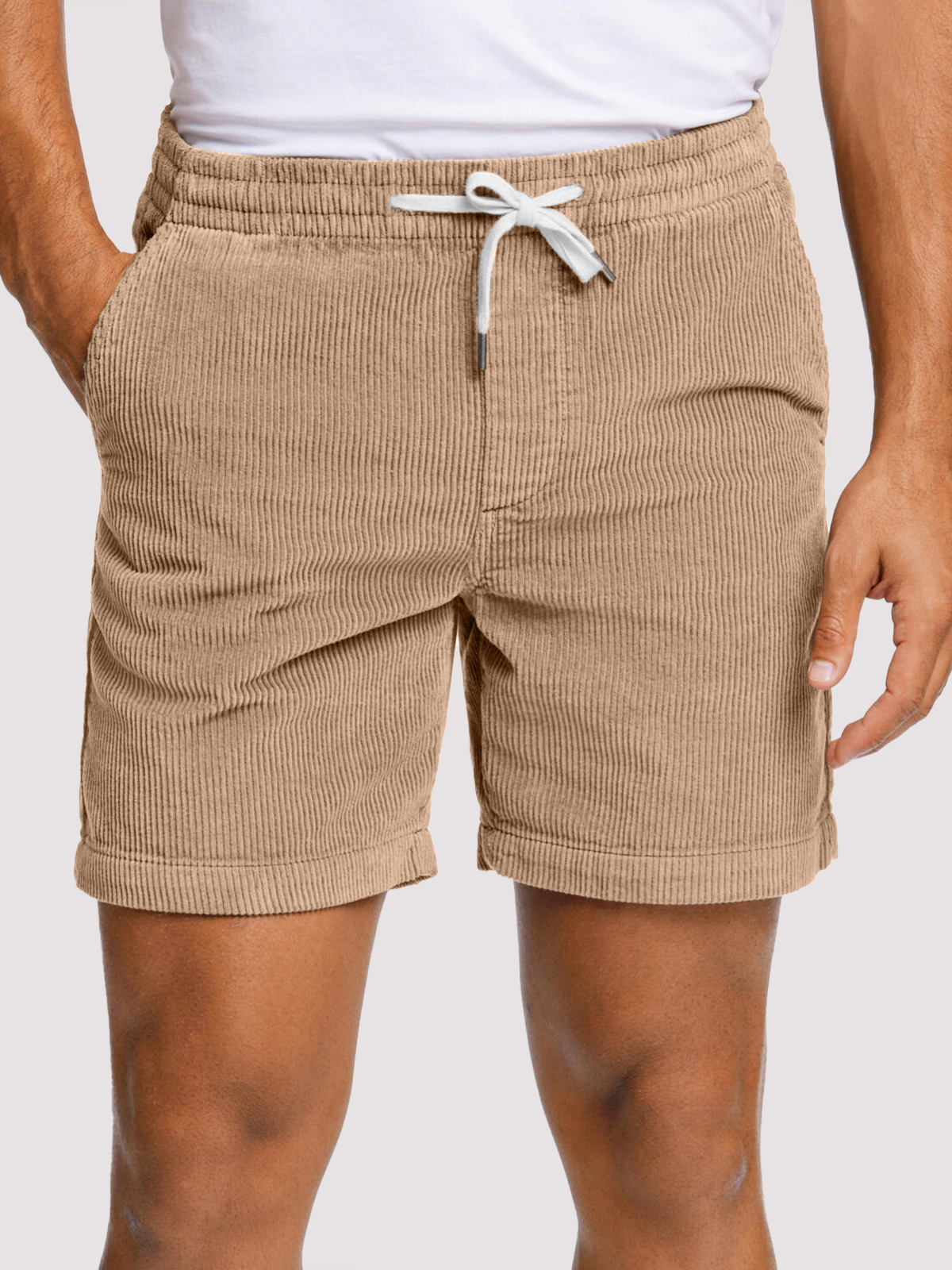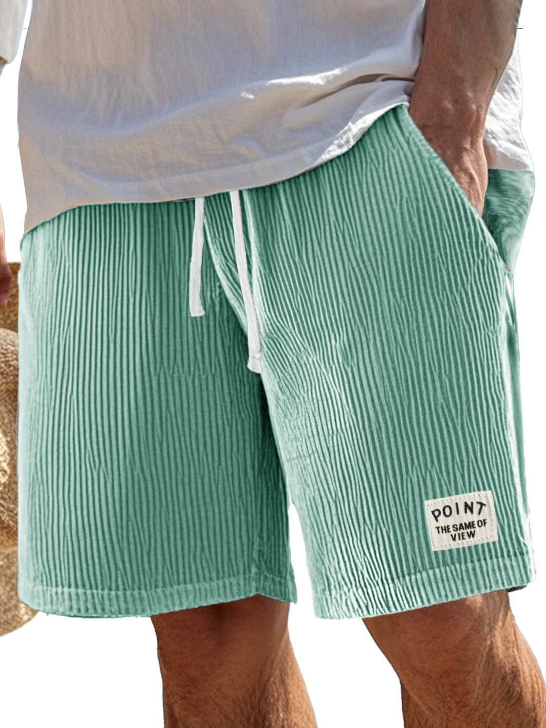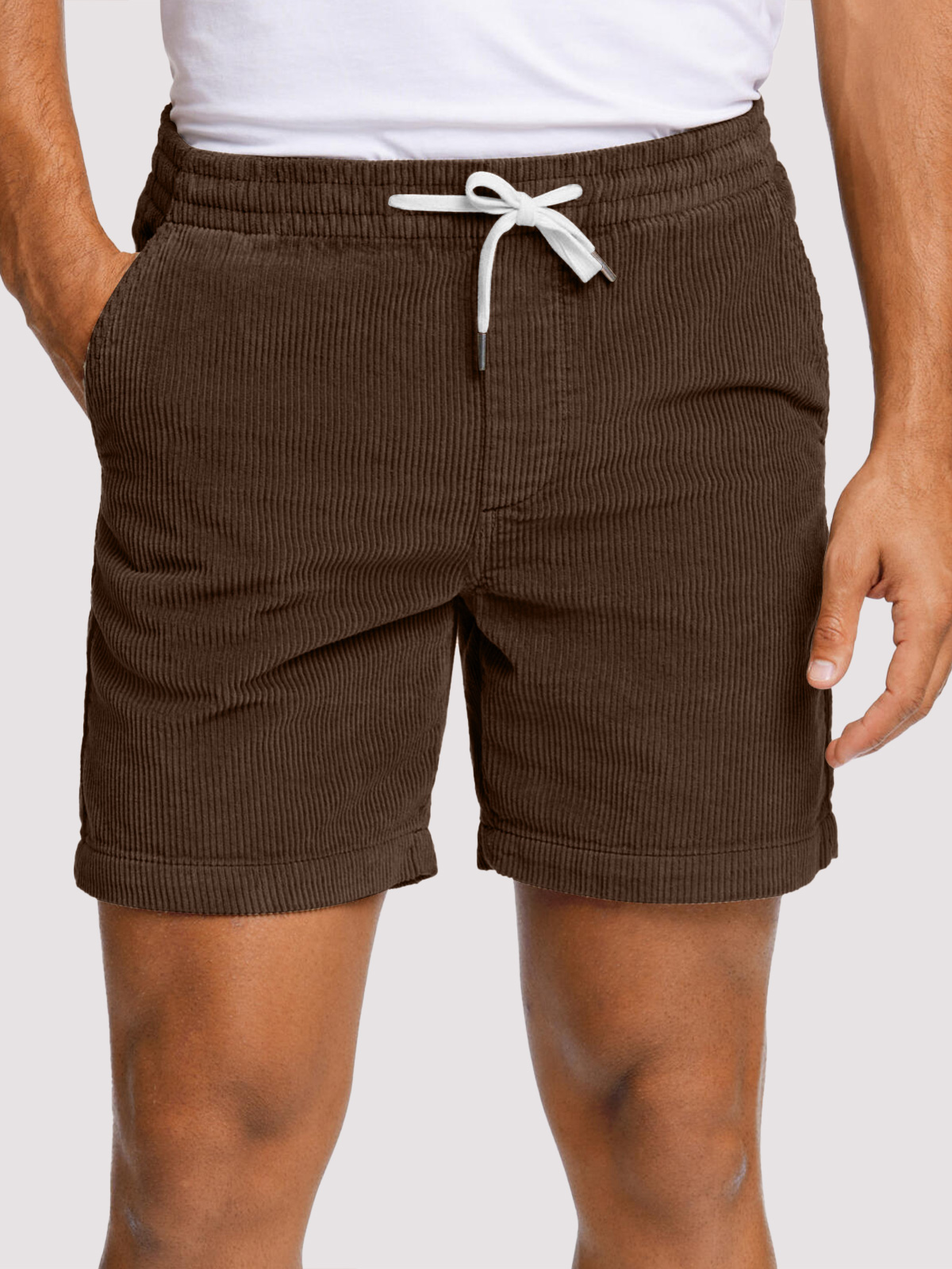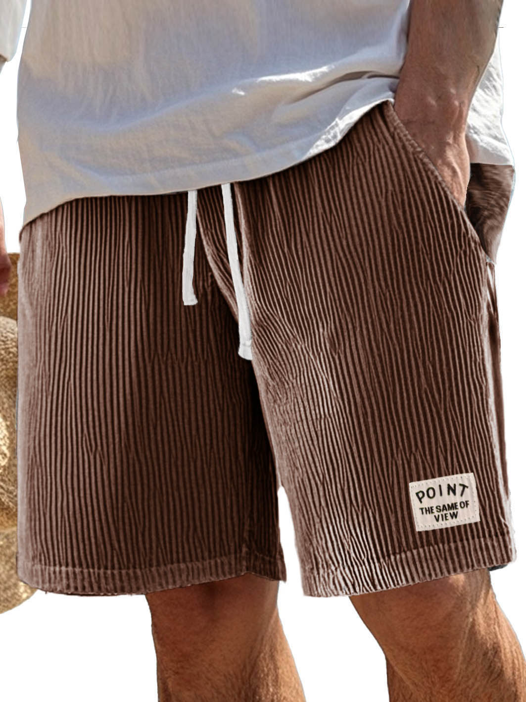Men's Stylish Corduroy Simple Embroidered Label Flat Seam Pocket Lace-up Versatile Shorts