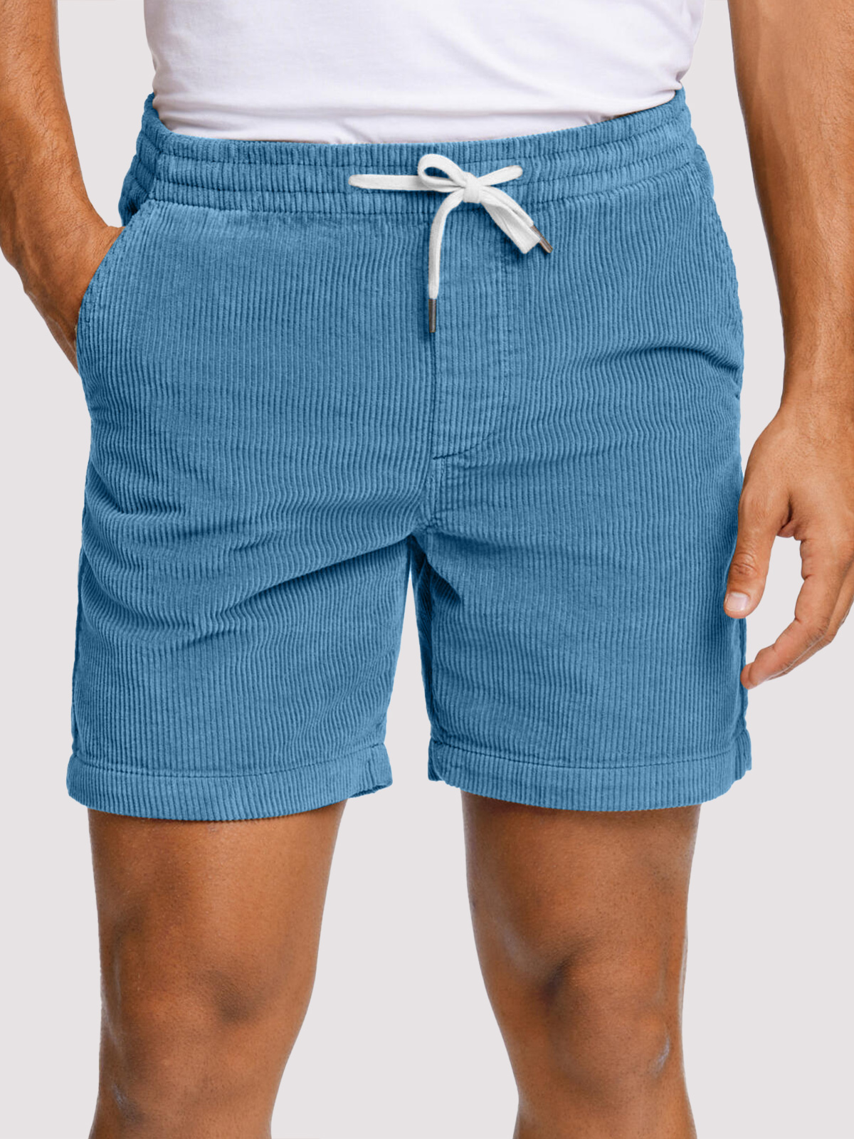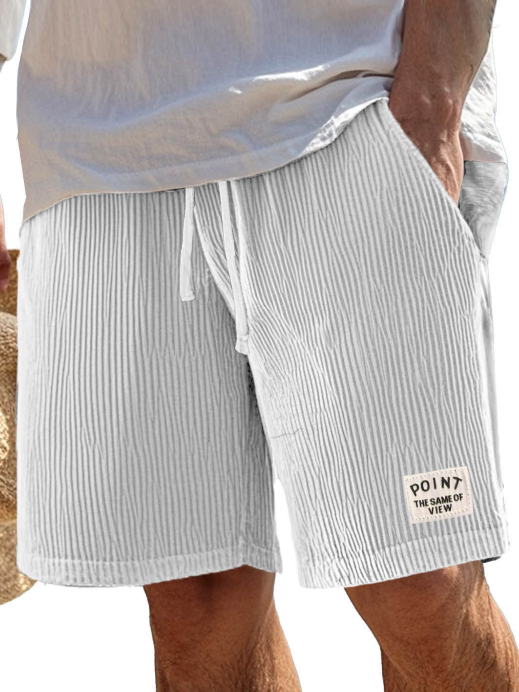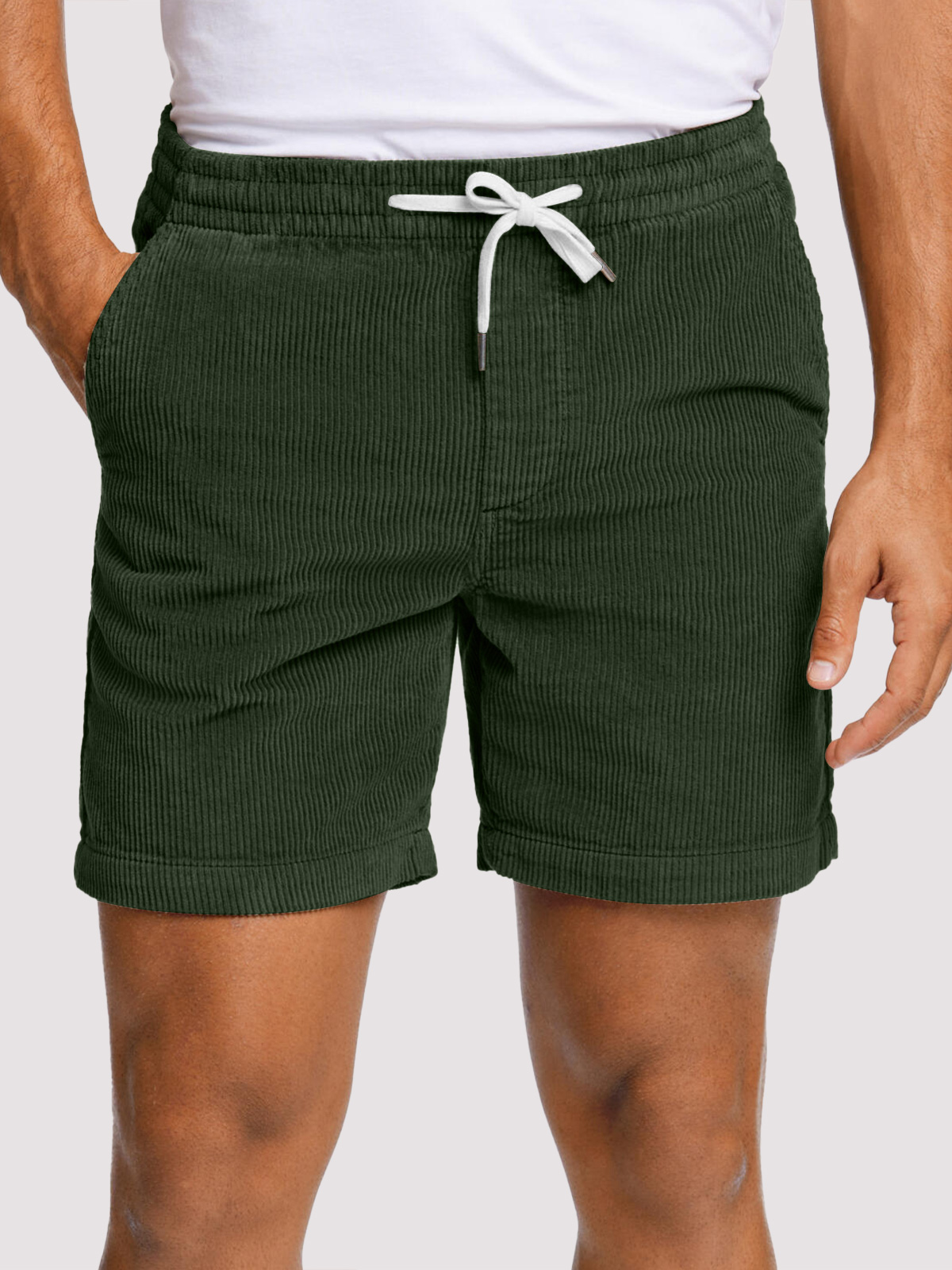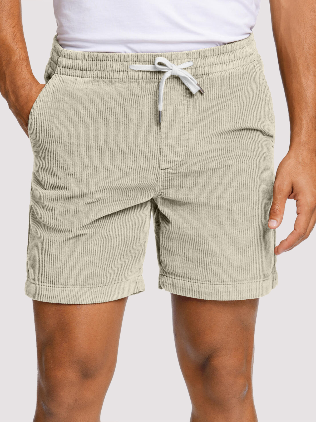 Men's Stylish Corduroy Simple Embroidered Label Flat Seam Pocket Lace-up Versatile Shorts