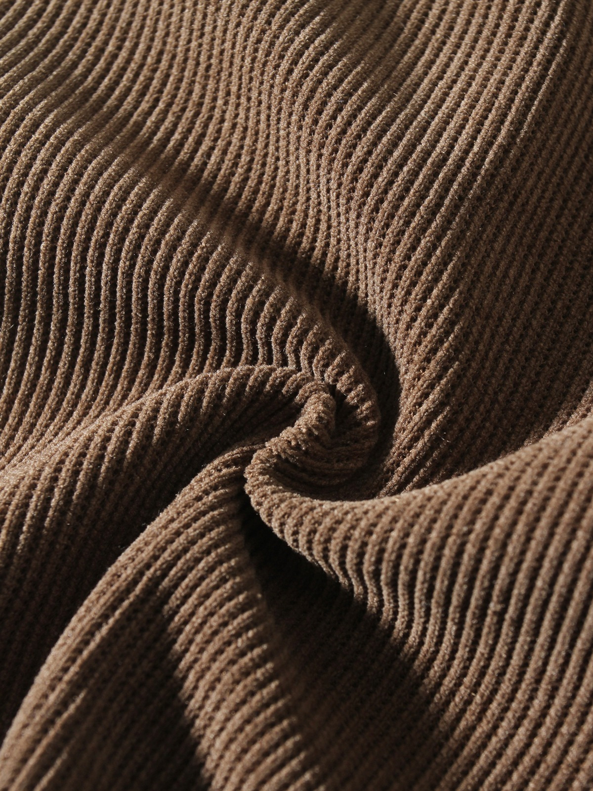 Men's Casual Round Neck Pit Stripe Textured Solid Color Long-sleeved T-shirt
