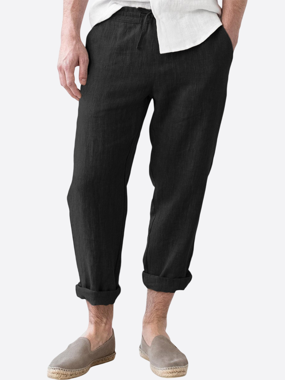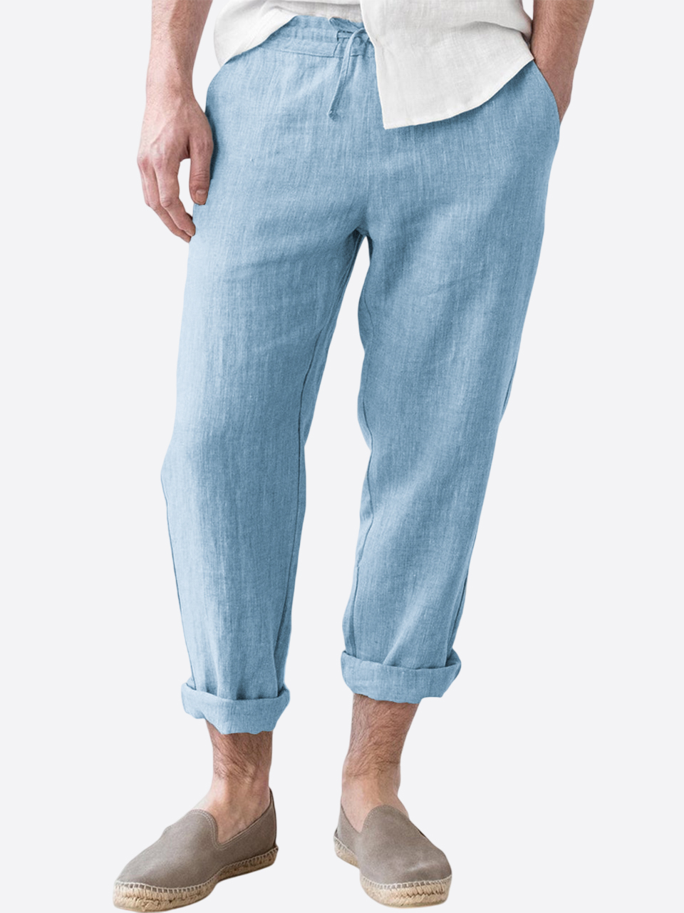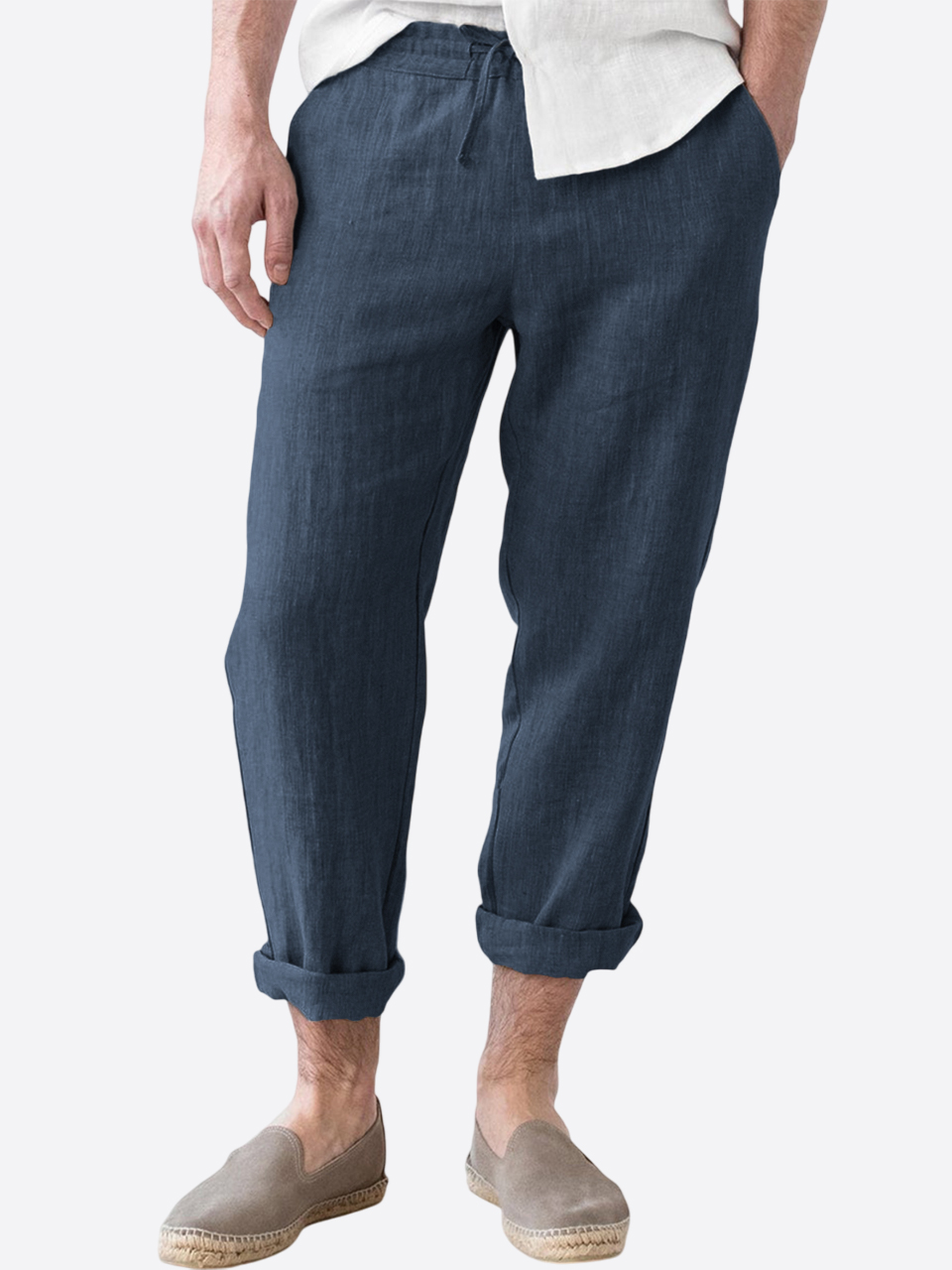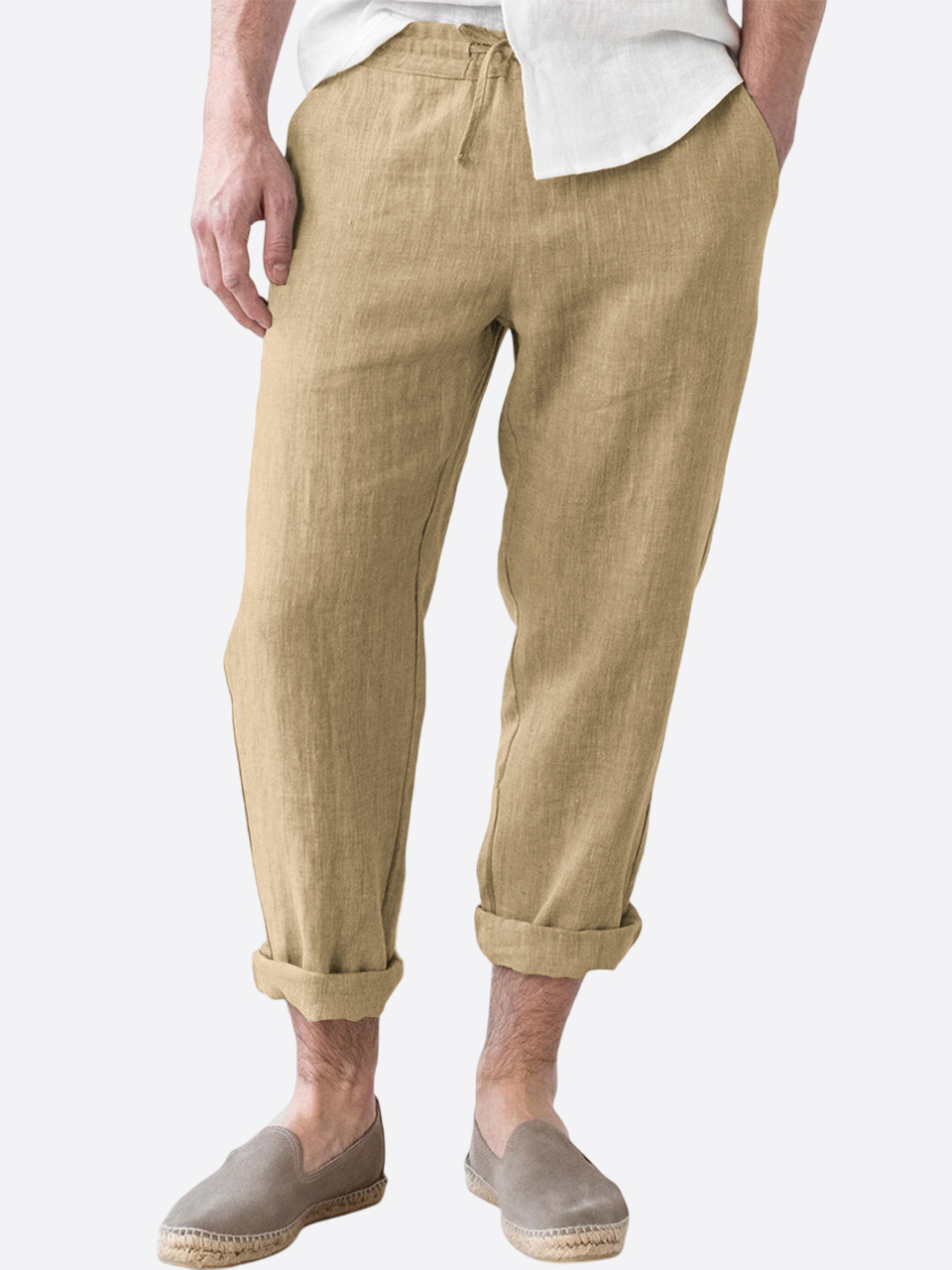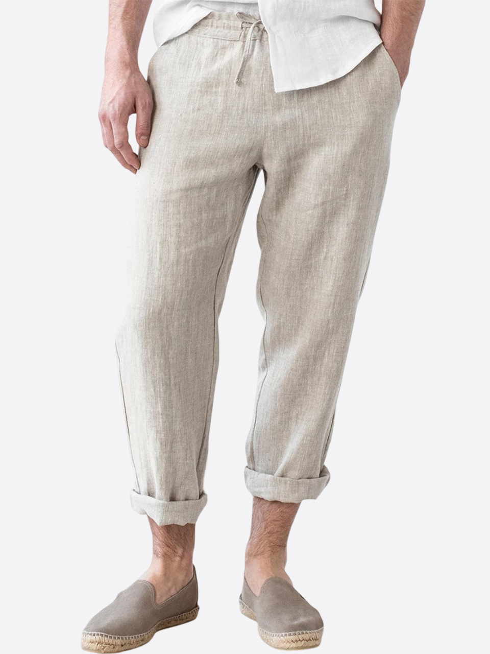 Men's Comfortable Linen Holiday Style Vintage Drawstring Long Pants with Side Pockets