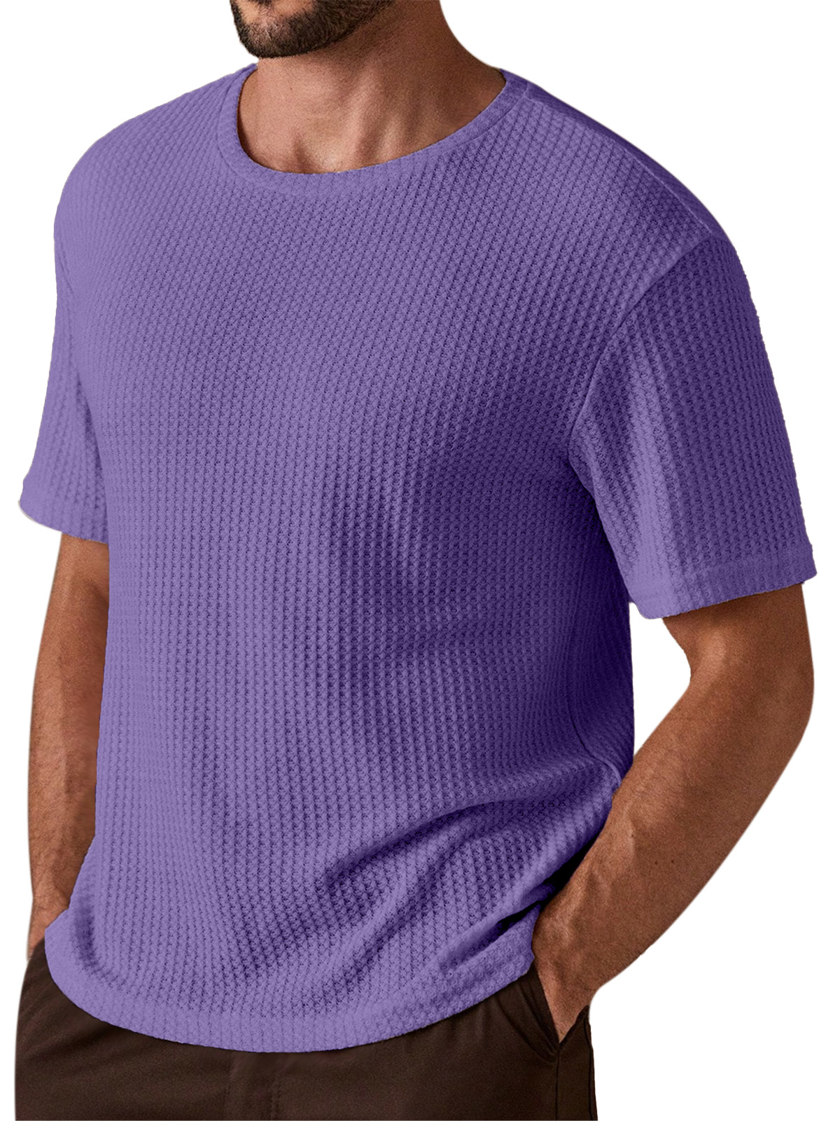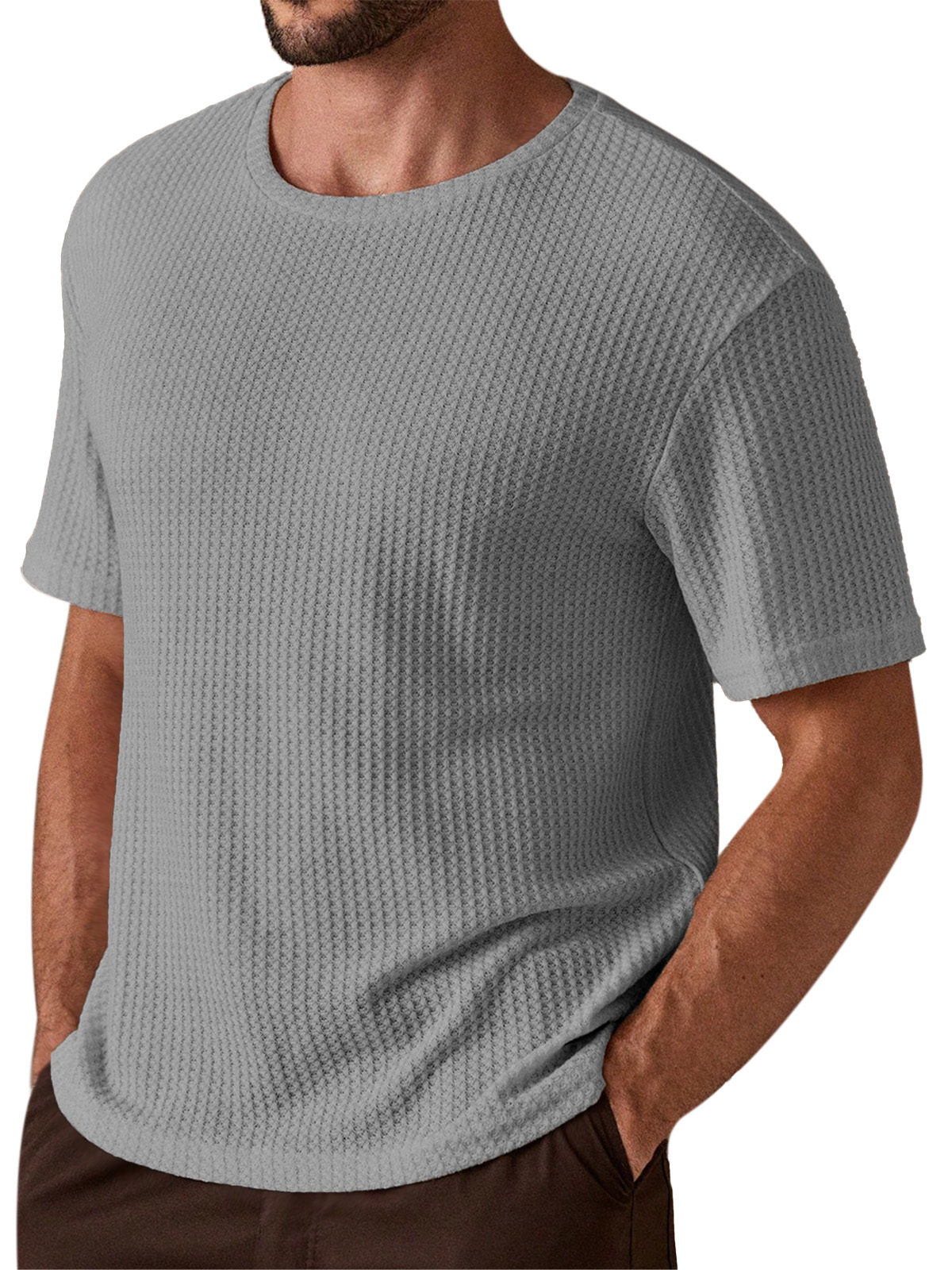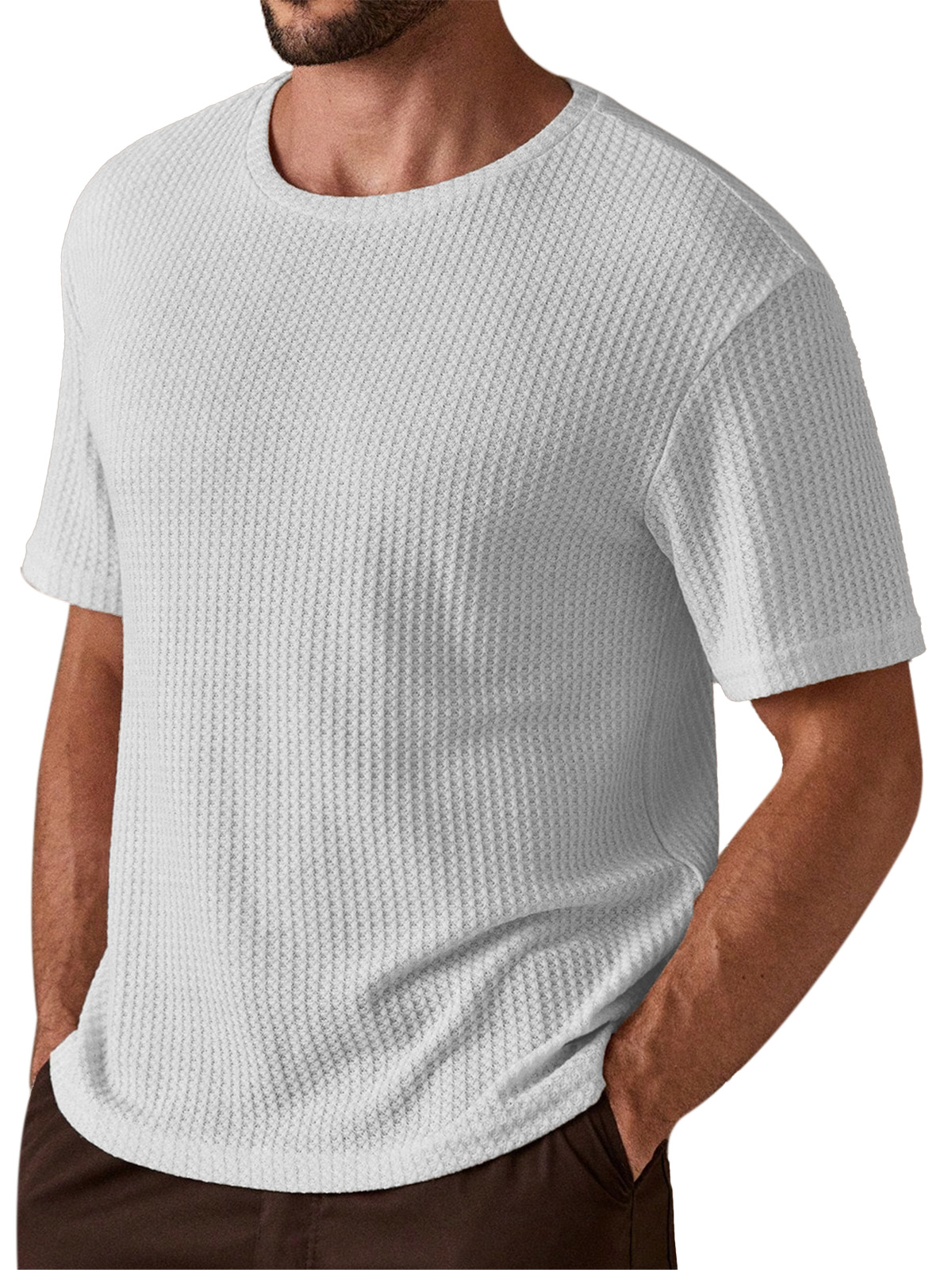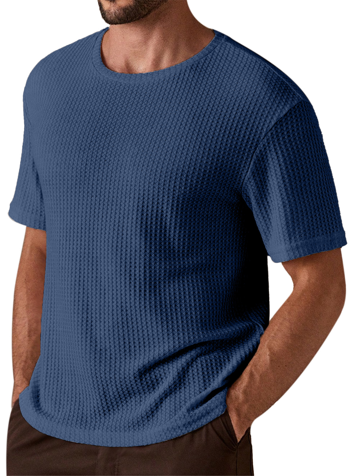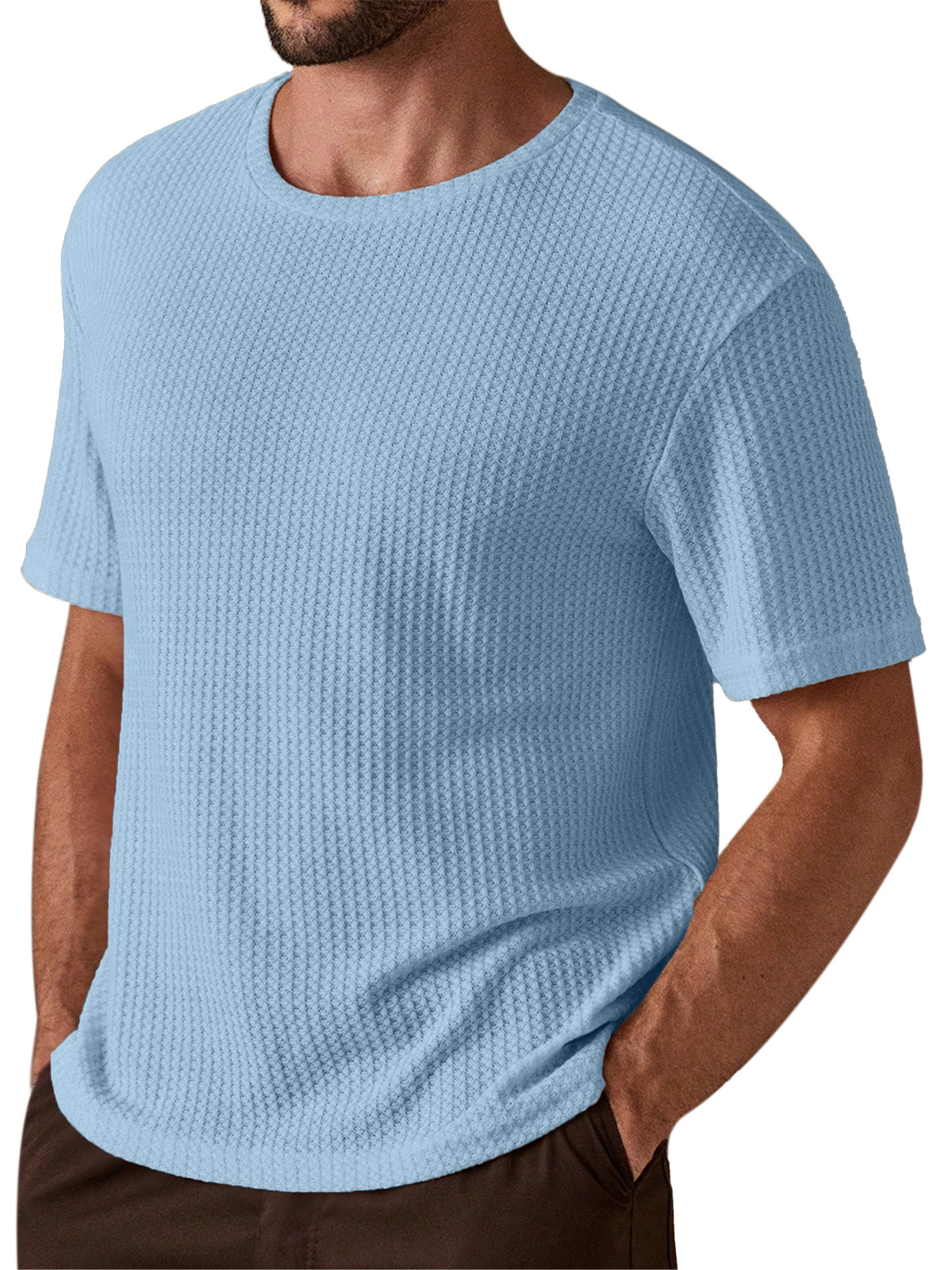 Men's Simple And Comfortable Solid Color Waffle Texture Round Neck Short-sleeved T-shirt