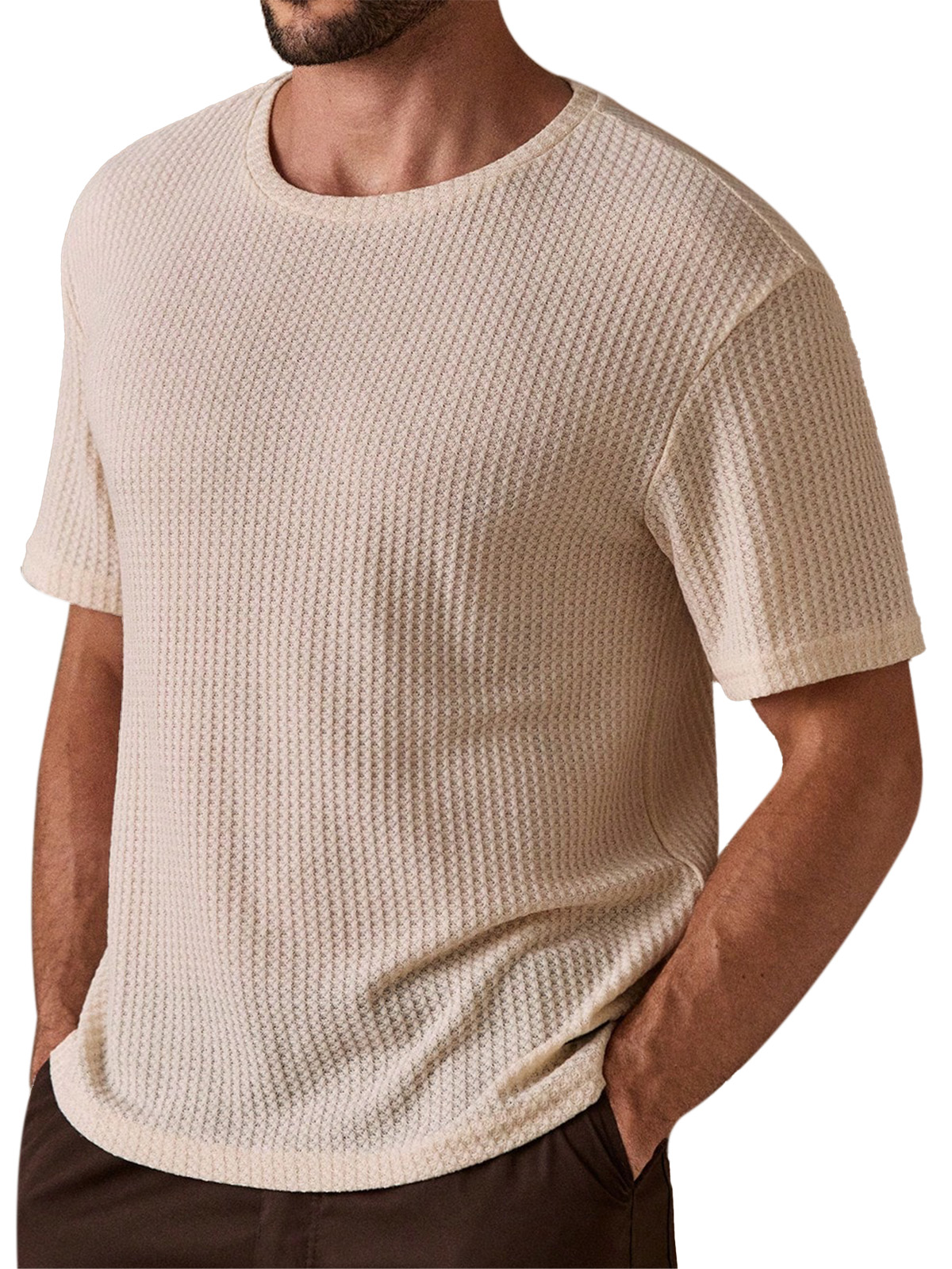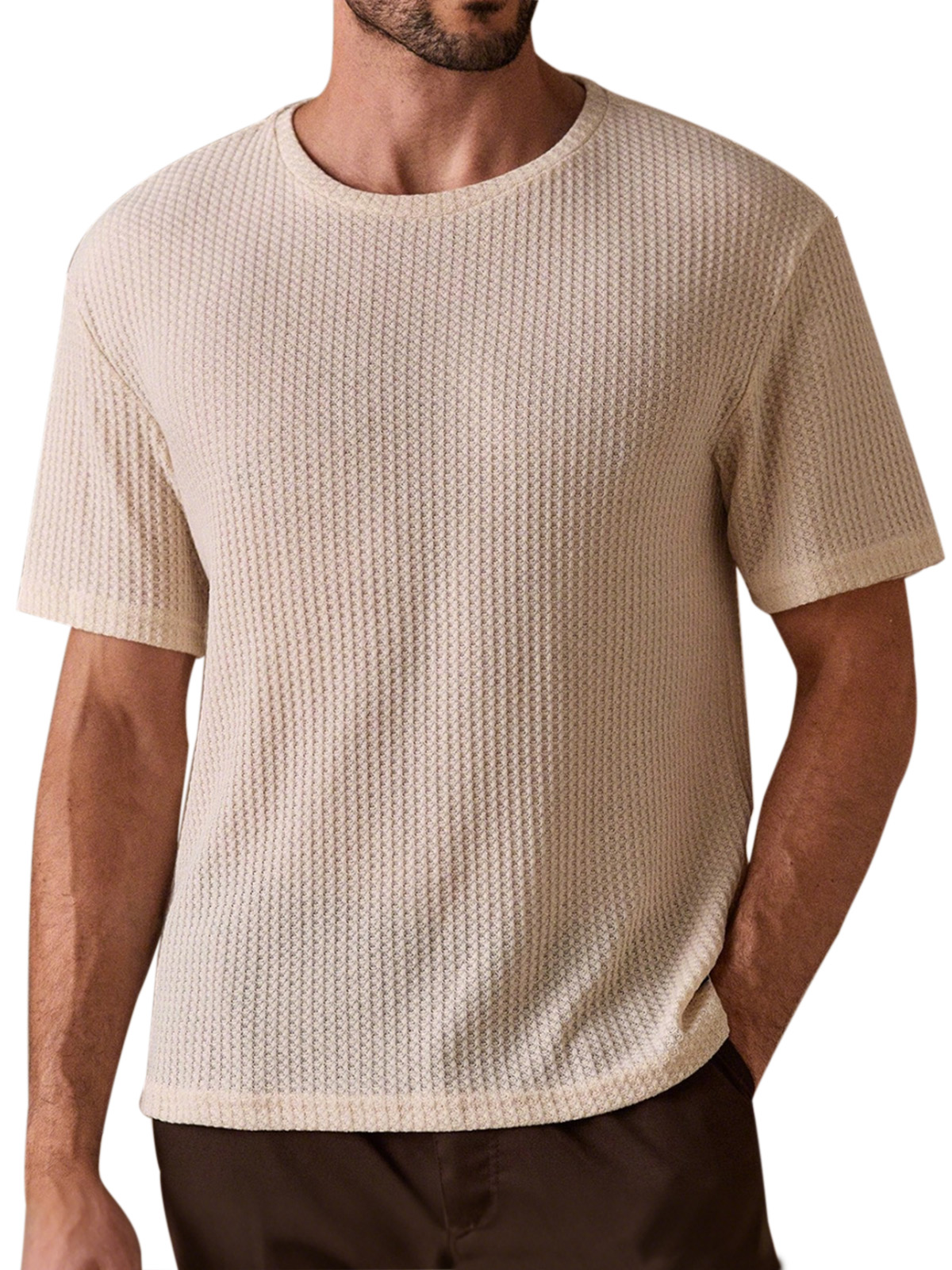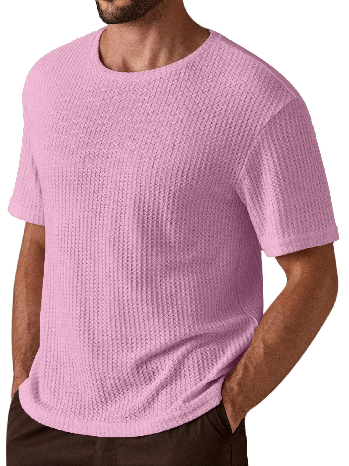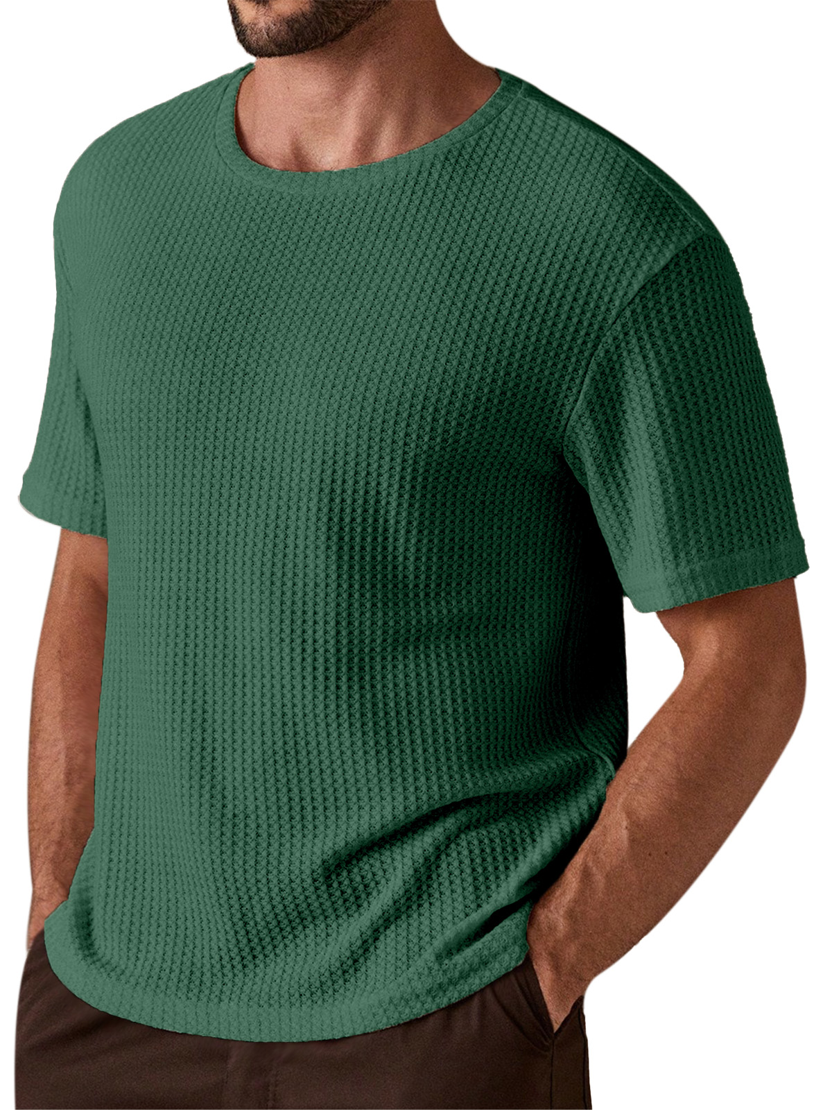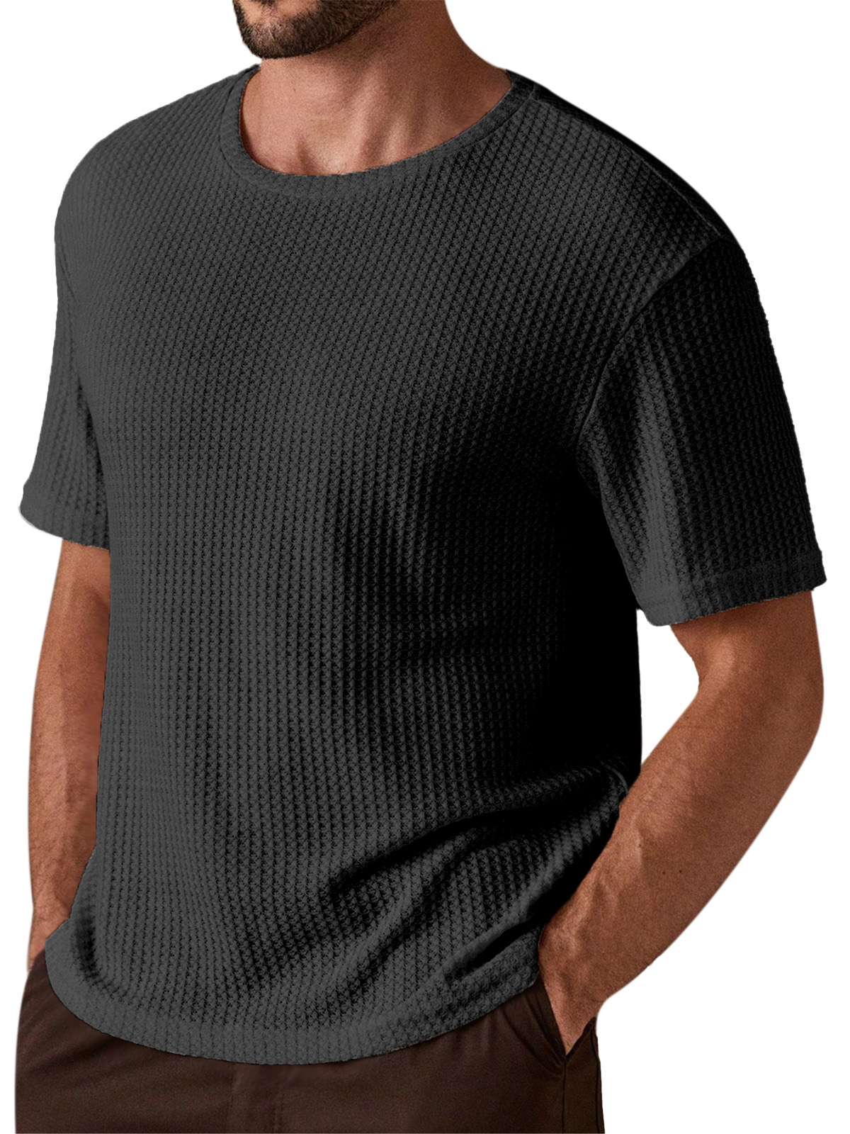 Men's Simple And Comfortable Solid Color Waffle Texture Round Neck Short-sleeved T-shirt
