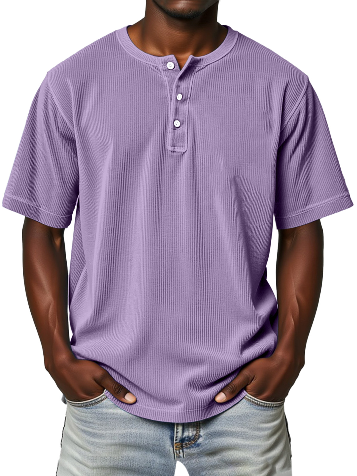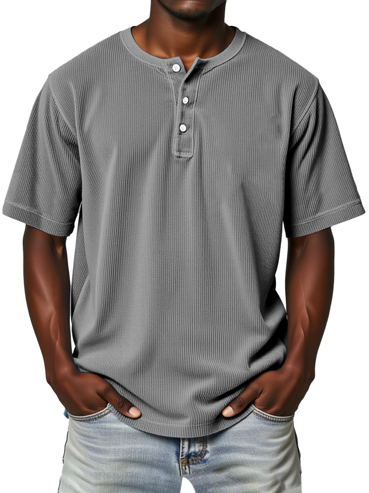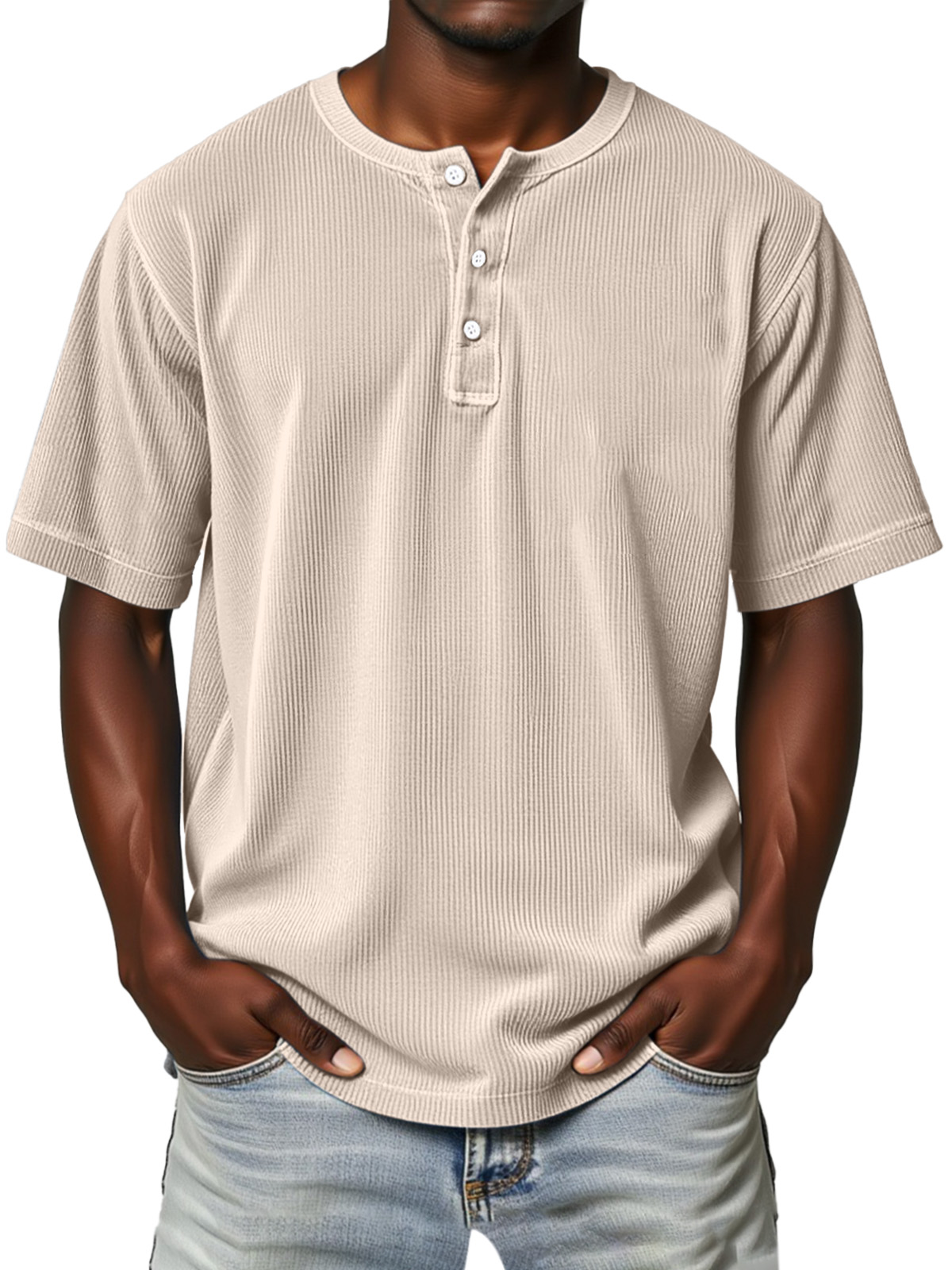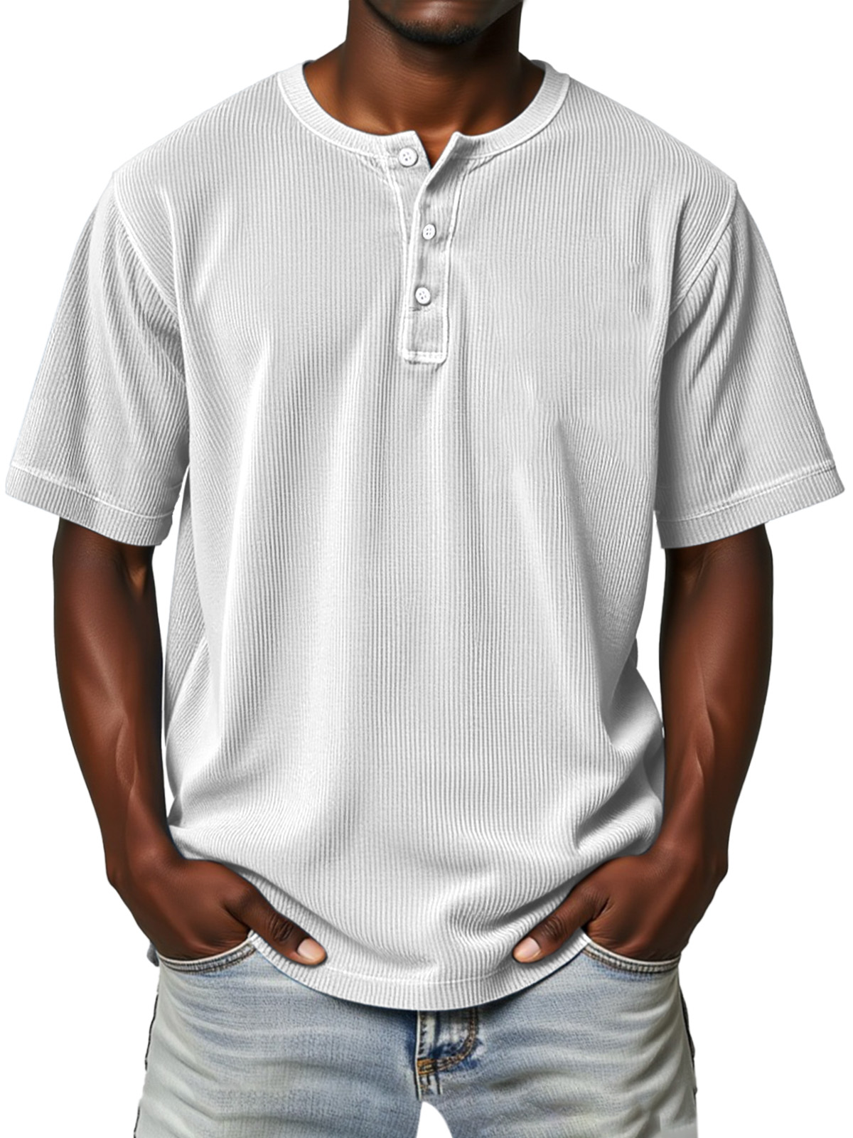 Men's Everyday Retro Vertical Stripe Solid Color Comfortable Short Sleeve Henley Shirt