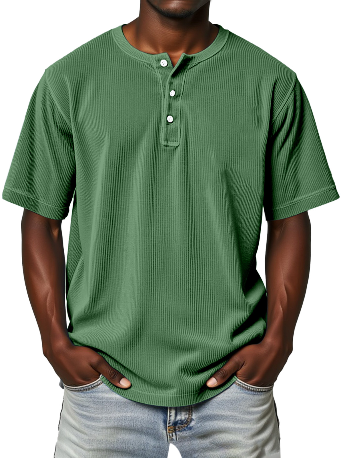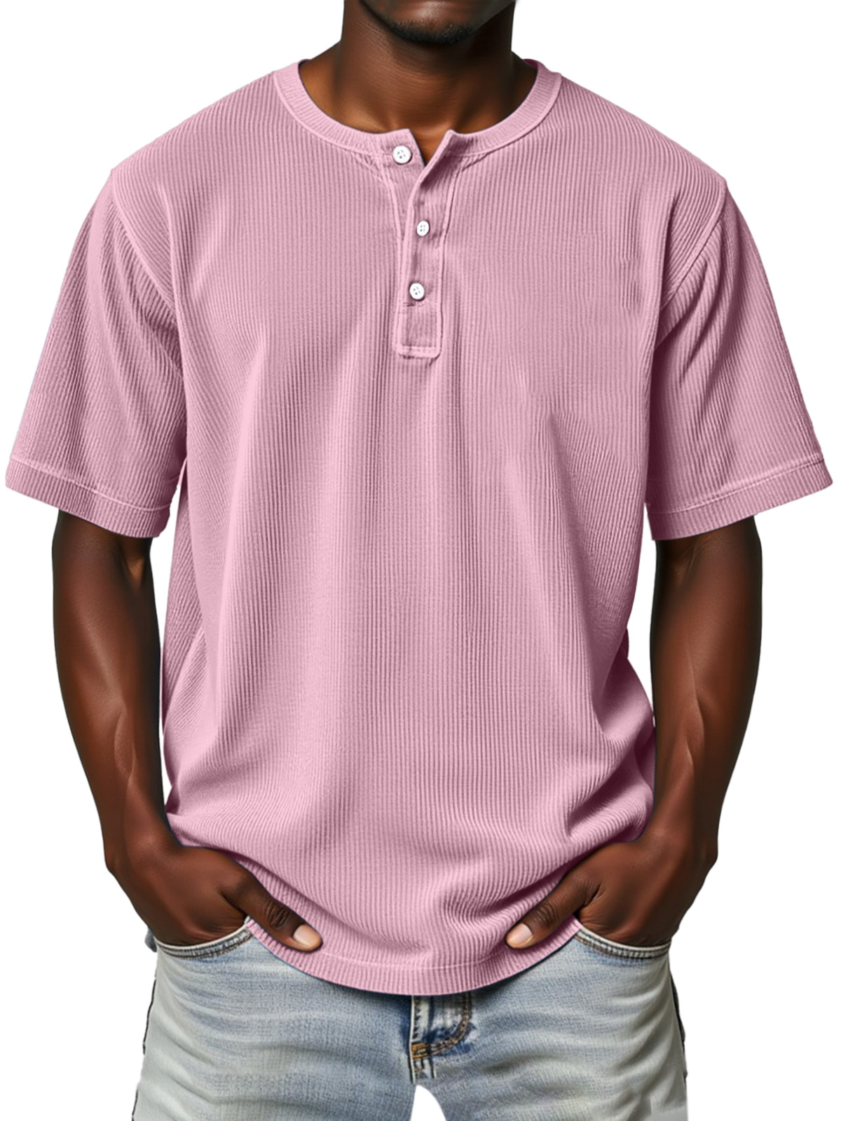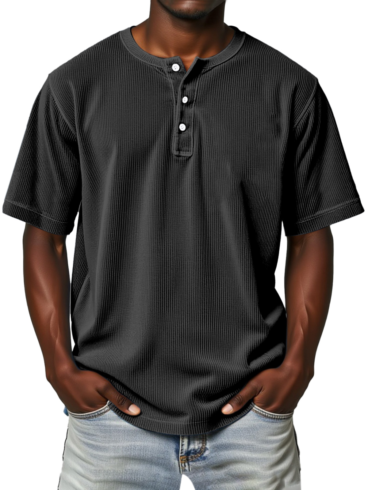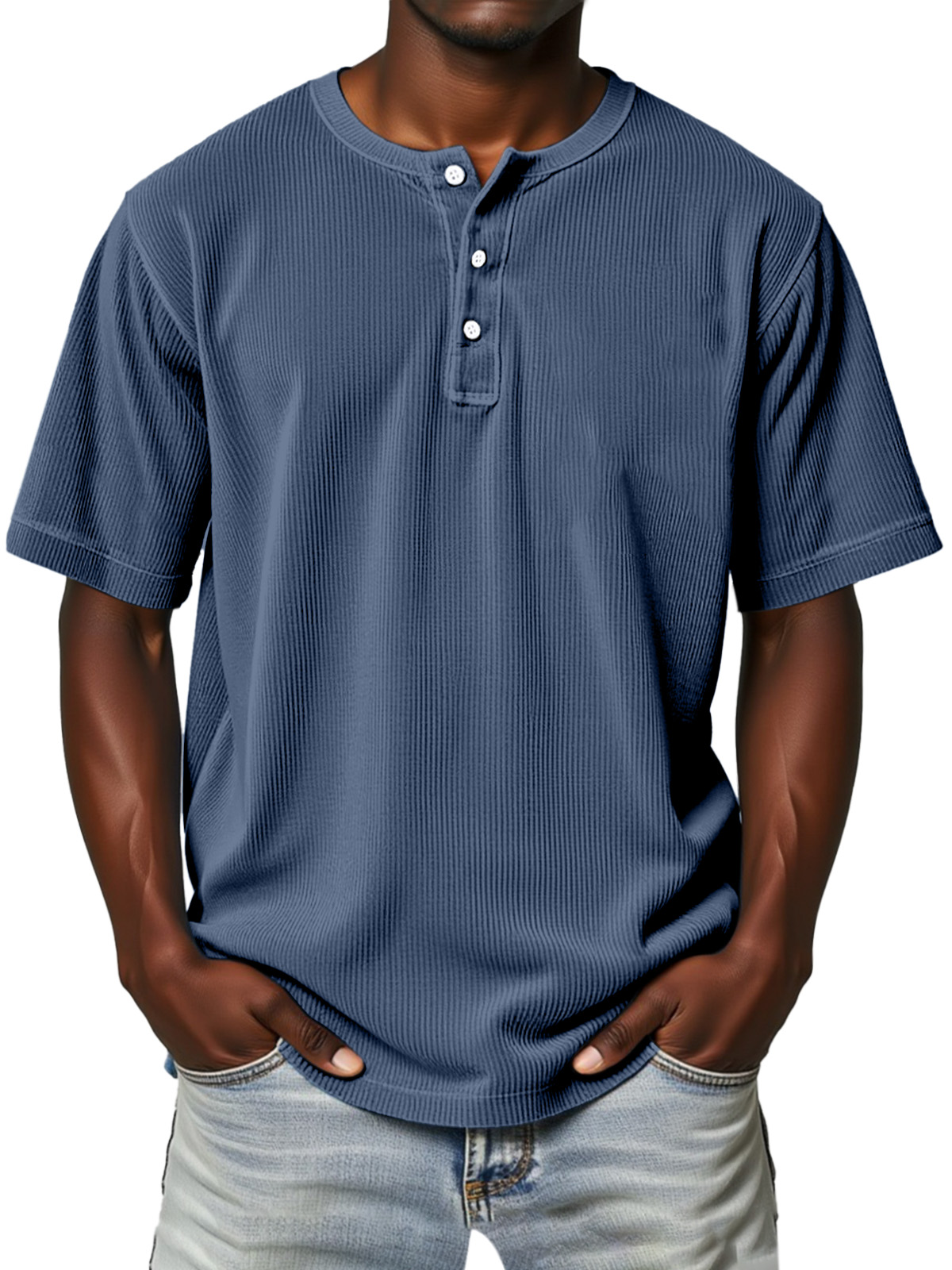 Men's Everyday Retro Vertical Stripe Solid Color Comfortable Short Sleeve Henley Shirt